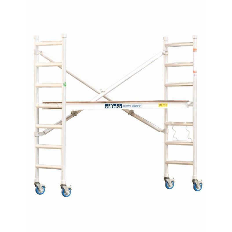 Super quick and easily assemble foldable aluminium scaffold for small jobs.